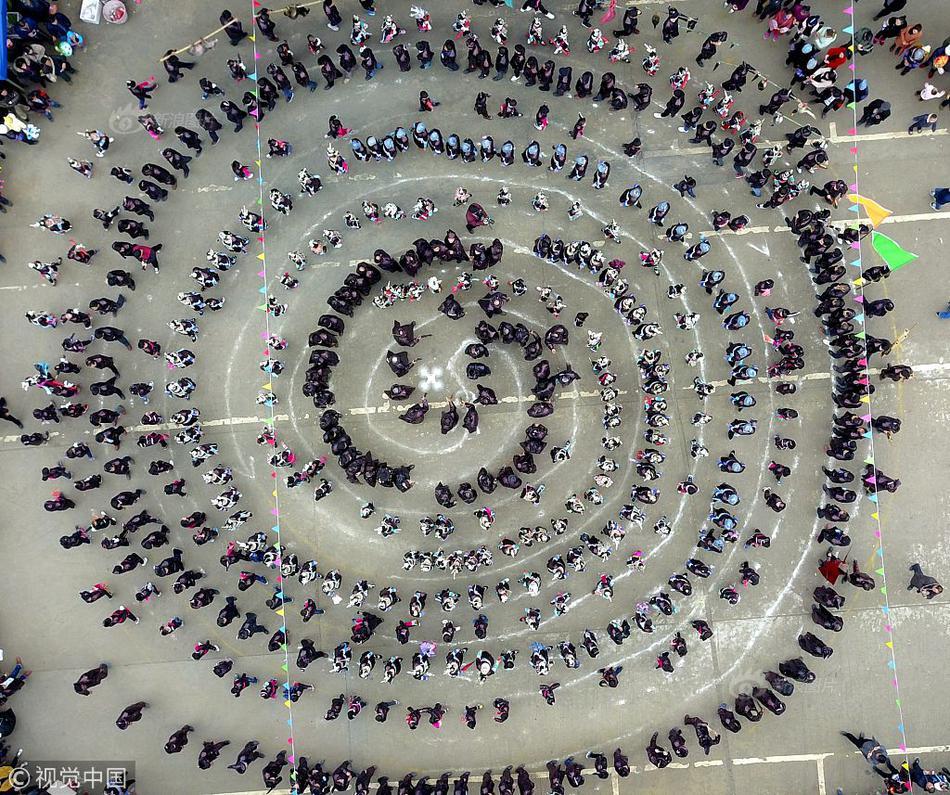 11月20日?qǐng)?bào)道,2018年11月19日,侗族同胞在參加貴州省從江縣慶云鎮(zhèn)“凍魚節(jié)”踩歌堂。(無(wú)人機(jī)拍攝)2018年11月19日,貴州省從江縣慶云鎮(zhèn)境內(nèi)的石姓侗族同胞迎來(lái)傳統(tǒng)一年一度的“凍魚節(jié)”,當(dāng)?shù)囟弊逋碇?jié)日盛裝舉行祭薩、踩歌堂、賽侗歌,慶祝豐收,祈福來(lái)年風(fēng)調(diào)雨順,五谷豐登。