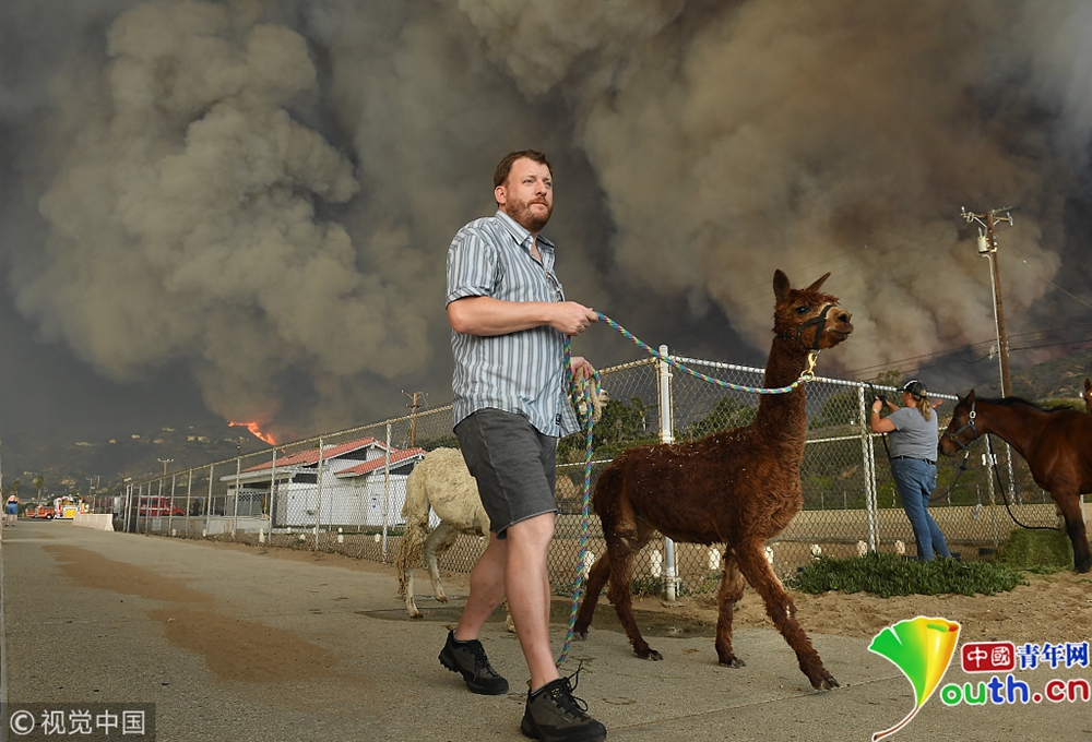 山火迅速蔓延至剛剛發(fā)生槍擊案的千橡樹市,并在9日翻過圣莫妮卡山,在強風(fēng)的助力下向海邊蔓延。