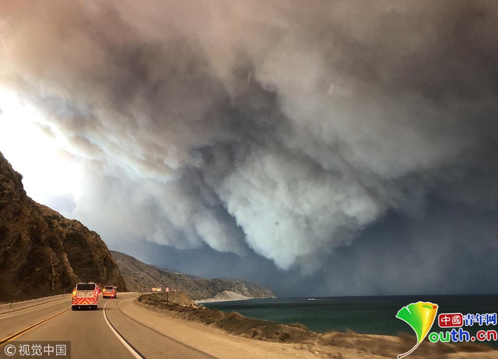 當(dāng)?shù)貢r間11月9日下午,美國加利福尼亞州南部文圖拉郡(Ventura County)等地熊熊山火已延燒逾萬英畝,濃煙遮天蔽日。