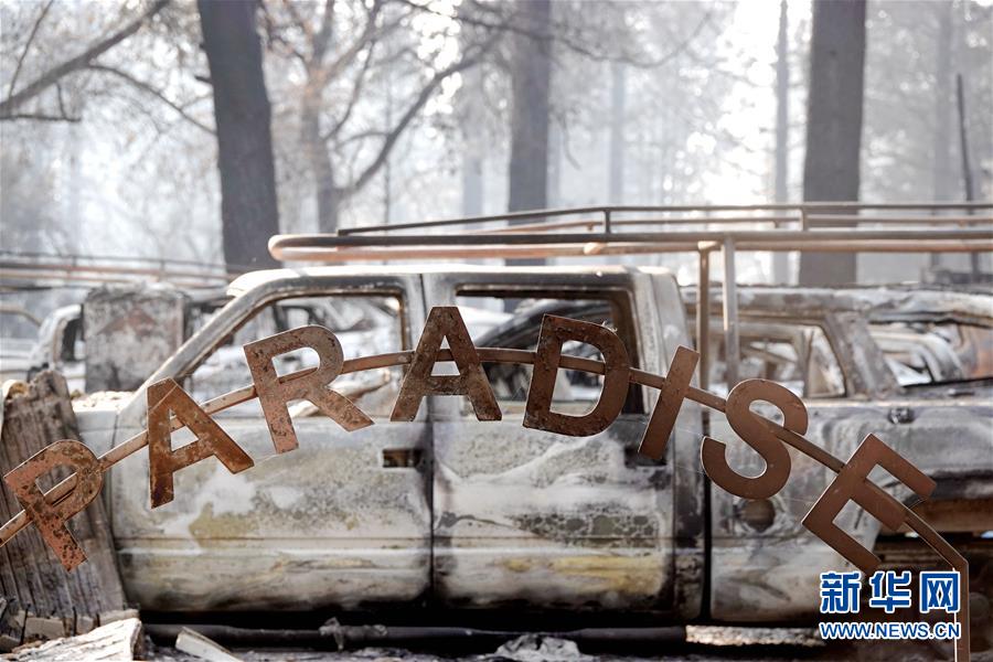 這是11月19日在美國加利福尼亞州比尤特縣天堂鎮(zhèn)拍攝的山火廢墟。新華社記者吳曉凌攝