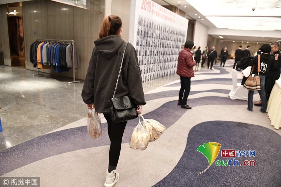 2018年11月20日,山東日照,一位培訓機構老師買來不少外賣,她介紹,這是給學生路上吃的,活動結束他們就會立即趕往下一個目的地,參加另一個比賽。圖片作者:視覺中國