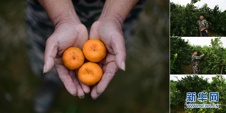 拼版照片:左圖為在永樂鎮(zhèn)四莫村,莫文振在果園里手捧剛剛摘下的桔子;右圖為莫文振在果園里勞作(照片均攝于11月19日)。莫文振從2012開始種植柑桔和甘蔗,2016年實現(xiàn)脫貧。 廣西融水苗族自治縣是國家扶貧工作重點縣,全縣“九山半水半分田”,生活生產(chǎn)環(huán)境較為惡劣,脫貧攻堅任務(wù)艱巨,目前還有7.68萬貧困人口。面對經(jīng)濟(jì)發(fā)展落后、貧困面廣且程度深的現(xiàn)狀,當(dāng)?shù)匕衙撠毠耘c創(chuàng)新產(chǎn)業(yè)扶持相結(jié)合,依托生態(tài)資源優(yōu)勢,實施“特色產(chǎn)業(yè)富民行動”,通過發(fā)展特色民族旅游、林下經(jīng)濟(jì)和特色養(yǎng)殖業(yè)等扶貧產(chǎn)業(yè),帶動貧困群眾依靠勤勞的雙手,拔窮根摘窮帽,實現(xiàn)脫貧致富。據(jù)了解,目前全縣貧困戶參與特色產(chǎn)業(yè)發(fā)展的有2.9萬戶,扶貧產(chǎn)業(yè)覆蓋率達(dá)95%。 新華社記者 黃孝邦 攝