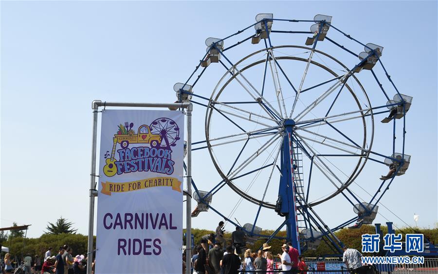 8月11日,在美國舊金山灣區(qū),人們在“臉書節(jié)”游戲區(qū)乘坐摩天輪。當日,舊金山灣區(qū)臉書園區(qū)舉行“臉書節(jié)”,人們在活動中欣賞文藝表演,品嘗美食,乘坐游樂設施等,活動收入將捐給慈善團體。新華社記者吳曉凌攝