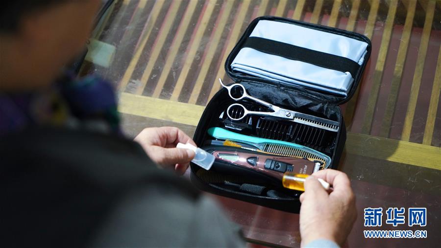 11月13日,鄒勤敏在家中準(zhǔn)備理發(fā)用的工具。