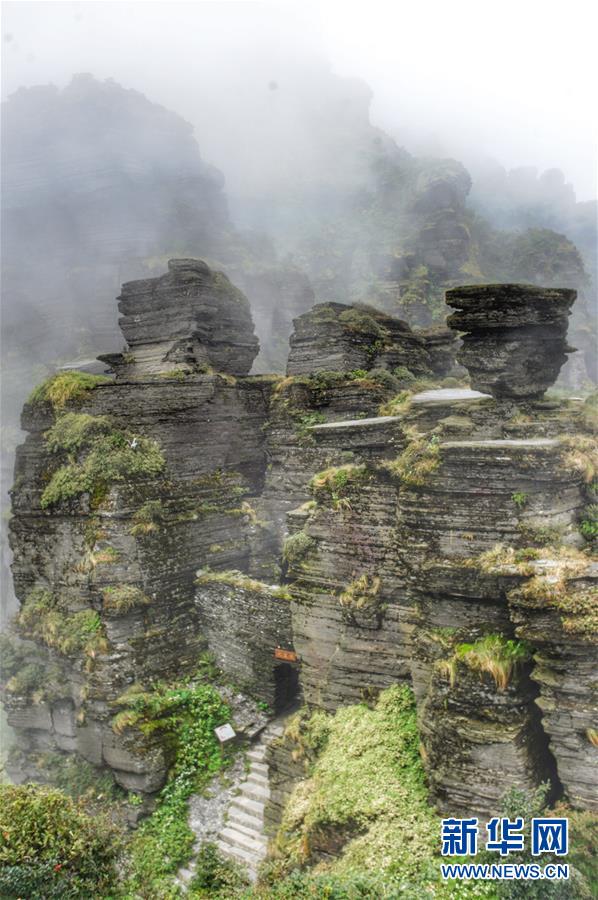 云蒸霧靄中的梵凈山(2011年9月6日攝)。新華社記者歐東衢攝 云蒸霧靄中的梵凈山(2011年9月6日攝)。新華社記者歐東衢攝 雨霧朦朧的梵凈山山頂風(fēng)光(2010年9月15日攝)。新華社記者劉續(xù)攝