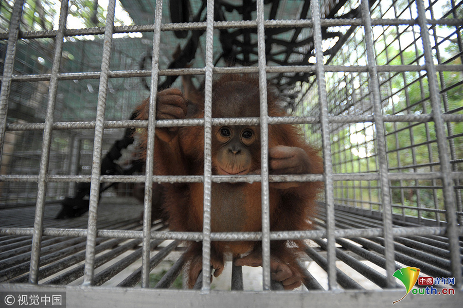 當地時間2018年9月18日,印尼加里曼丹克塔邦,國際動物救援(IAR)猩猩安全與保護中心里。圖片作者:Newscom