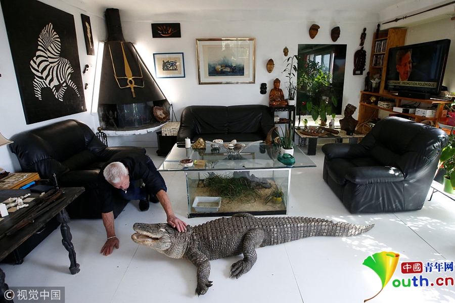 Philippe Gillet將短吻鱷從小養(yǎng)大,在家里允許它們肆意走動,就如同我們的家養(yǎng)貓貓狗狗一樣。