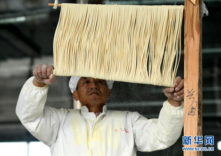 河北石家莊的藁城宮面歷史悠久,因曾進貢清朝皇宮而得名。宮面采用手工制作,整個生產(chǎn)過程包括和面、開條、盤條、上軸、分面等十幾道工序,以“面細能穿針,空心有韌性”為特色,食用方便,營養(yǎng)豐富。藁城宮面制作技藝于2013年入選河北省級非物質(zhì)文化遺產(chǎn)名錄。