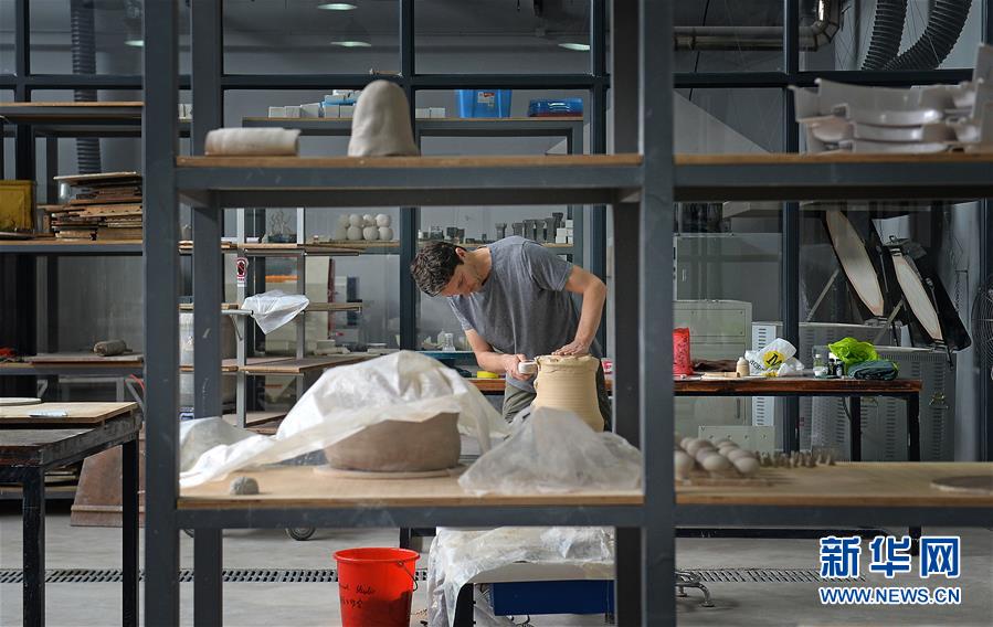 在江西景德鎮(zhèn)陶溪川文創(chuàng)街區(qū)的國(guó)際工作室,一位來自美國(guó)的藝術(shù)家在制作陶瓷藝術(shù)品(2016年10月20日攝)。 新華社記者 萬象 攝