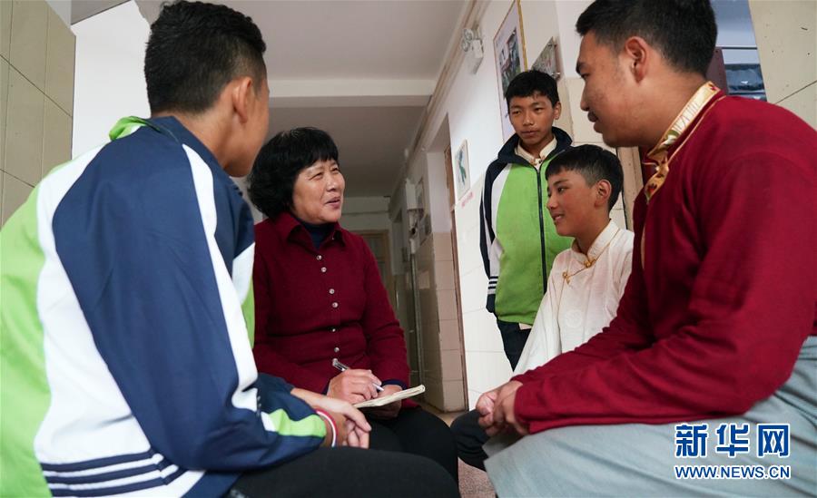 11月16日,劉和平(左二)與南昌市第十七中學西藏班學生聊天。新華社記者 胡晨歡 攝