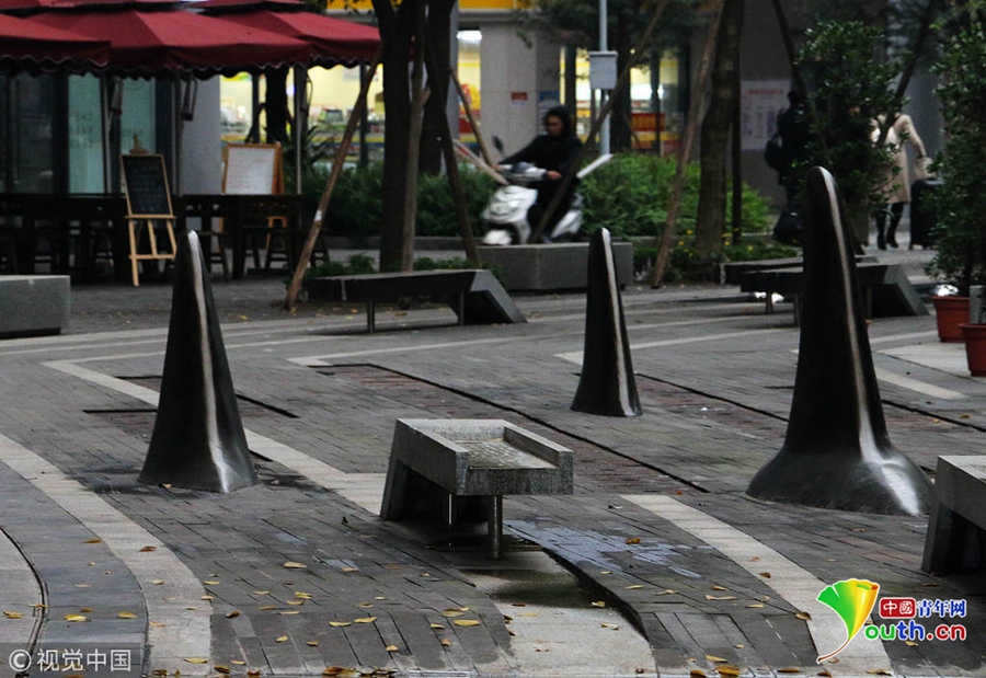 對于這種設計,不少市民覺得比較精巧的,遠遠地望去,就好像在海面上露出魚鰭的一群鯊魚,不僅可以防止被車輛占道,而且還有點裝飾的效果。