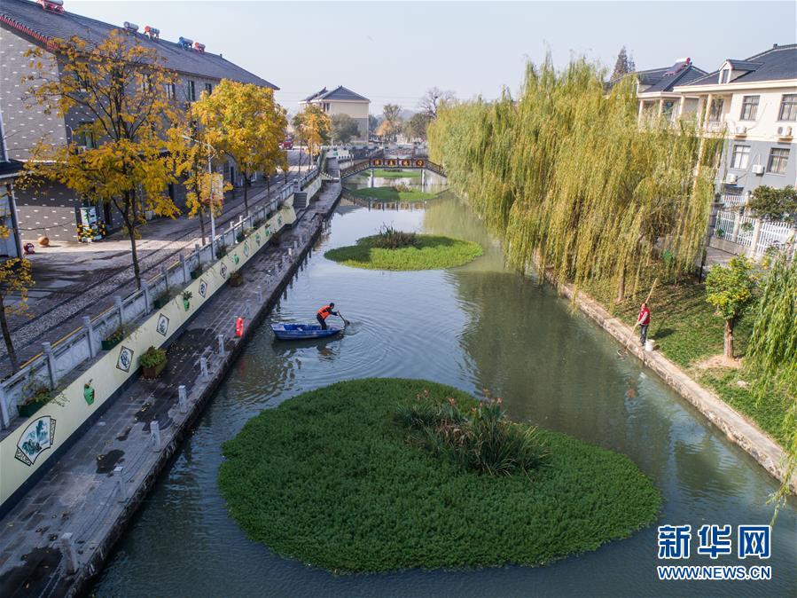 11月28日,長興縣虹星橋鎮(zhèn)港口村東港內(nèi),河長孫根法在打撈水面漂浮物(無人機(jī)拍攝)。東港全長1500米,環(huán)繞港口新村。2012年,新村建成后,港口村通過加固河岸、清理河道、種植浮草等方式對東港進(jìn)行生態(tài)治理,并由該村黨總支書記孫根法擔(dān)任河長,定期開展巡查,引導(dǎo)村民自覺維護(hù)河道整潔。 新華社記者 徐昱 攝