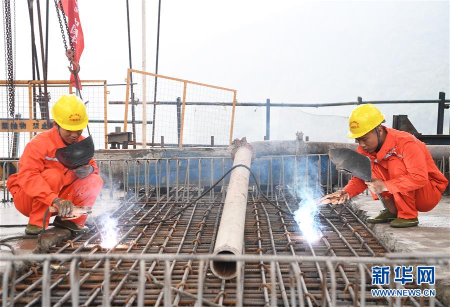 10月23日,在重慶涪陵,施工人員在渝懷鐵路涪秀二線重點工程——烏江右線大橋主跨合龍現(xiàn)場作業(yè)。 當(dāng)日,由中鐵四局承建的渝懷鐵路涪秀二線重點工程——烏江右線大橋主跨成功合龍,標(biāo)志著大橋主體工程全部順利結(jié)束。烏江右線大橋項目全程460.1米,主跨192米,跨越烏江和319國道。在兩年多的建設(shè)過程中,施工人員攻克了“不等高墩”“不對稱邊跨”“邊跨入隧”等多個技術(shù)難題。 新華社記者王全超攝