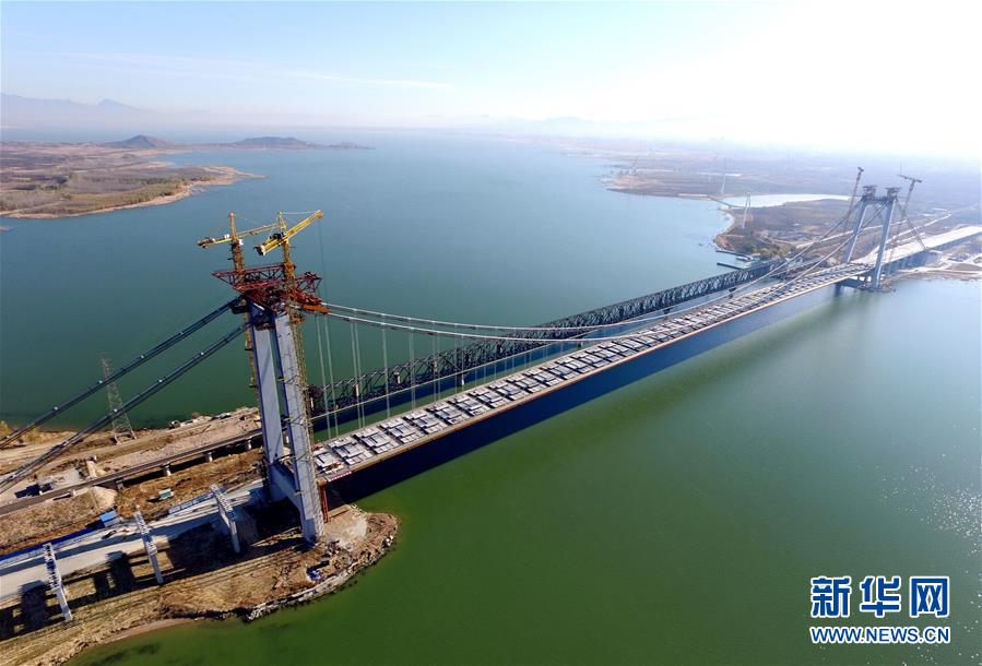 這是主橋成功合龍的河北懷來官廳水庫公路大橋(10月30日無人機拍攝)。新華社記者楊世堯攝