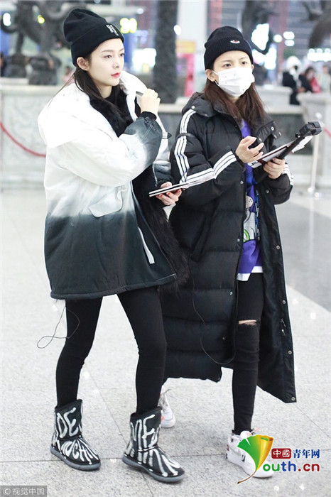 2018年12月3日,北京,“火箭少女101”全體成員現(xiàn)身機(jī)場(chǎng)前往國(guó)外錄制團(tuán)總綜。其中孟美岐戴著墨鏡,一身全黑運(yùn)動(dòng)裝扮,大步流星氣場(chǎng)超強(qiáng),楊蕓晴、yamy、楊超越等成員緊隨其后,大家還一起在機(jī)場(chǎng)玩起自拍,好不歡樂(lè)。