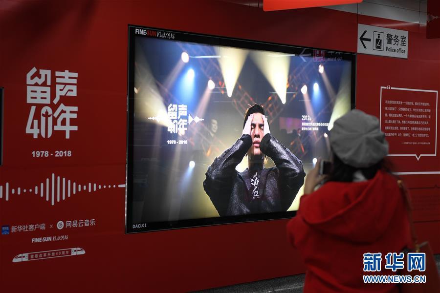 12月3日,乘客乘坐北京地鐵4號(hào)線留聲專列。 在慶祝改革開(kāi)放40周年之際,當(dāng)日,新華社客戶端聯(lián)合網(wǎng)易云音樂(lè)在北京地鐵4號(hào)線宣武門站和杭州地鐵1號(hào)線定安路站,舉辦主題為“留聲40年:那些改變你我的故事”音樂(lè)主題影像展。同時(shí),兩列滿載著“音樂(lè)故事”的留聲專列也開(kāi)始在北京地鐵4號(hào)線、大興線及杭州地鐵1號(hào)線上開(kāi)出。 音樂(lè)主題影像展通過(guò)中國(guó)照片檔案館珍貴的歷史照片,展示40年來(lái)中國(guó)音樂(lè)的發(fā)展歷程以及音樂(lè)給人們生活帶來(lái)的改變。 新華社記者 鞠煥宗 攝