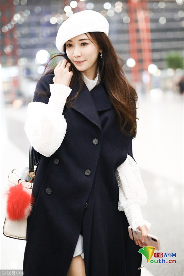 11月19日,北京,林志玲現(xiàn)身機場,林志玲穿黑色大衣配貝雷帽溫暖俏皮,揮手賣萌露修長美腿女神氣質(zhì)爆棚。