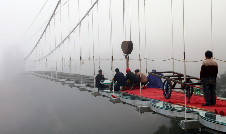 恐高勿進!玻璃橋這樣鋪成!