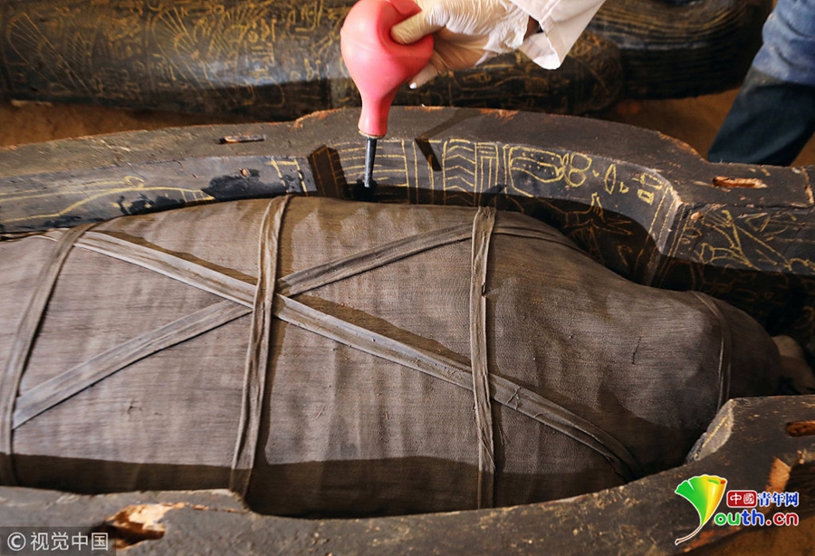 當?shù)貢r間2018年11月24日,埃及盧克索,考古學家在當?shù)匕l(fā)掘出一處墓穴,在其中發(fā)現(xiàn)石棺、木乃伊等文物,時間可追溯至公元前4-7世紀。