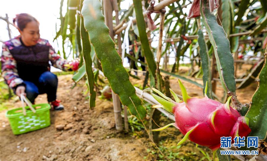 12月3日,一名北京游客在大廠回族自治縣一家農(nóng)業(yè)園采摘火龍果。