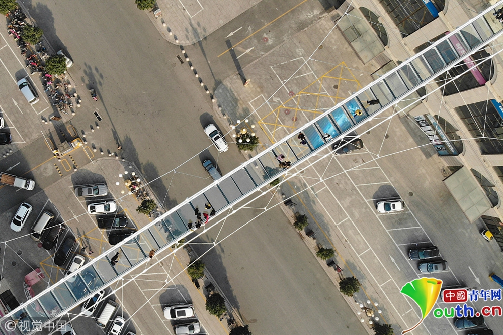 石家莊市區(qū)玻璃橋走紅 踩上去有破裂特效聲