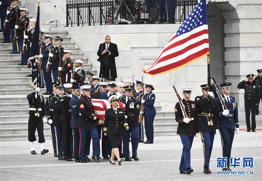 12月5日,在美國首都華盛頓,美國前總統(tǒng)喬治·赫伯特·沃克·布什的靈柩離開國會大廈。