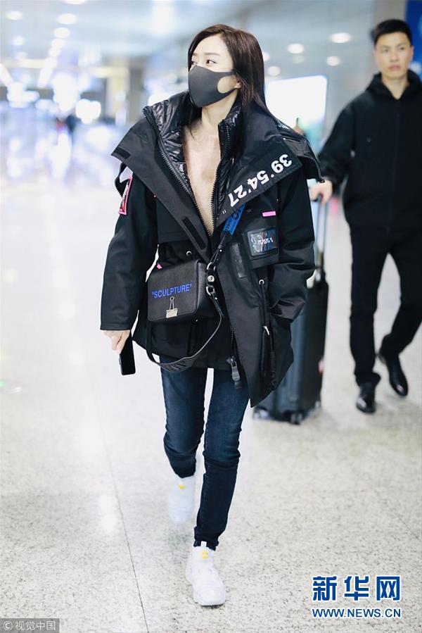 秦嵐潮味棉服亮相機場 口罩遮面露甜笑
