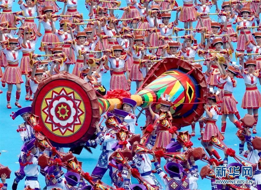 12月10日,廣西壯族自治區(qū)成立60周年慶祝大會(huì)在廣西體育中心隆重舉行。這是慶祝大會(huì)上的群眾文藝表演。 新華社記者 陳建力 攝