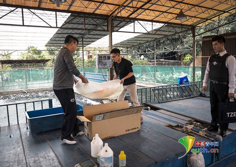 中國青年網(wǎng)2018年12月12日訊 由于這條錦鯉價(jià)格昂貴,錦鯉的原主人——“長彥觀賞魚漁場”淘寶店主李長彥請安保一路護(hù)送錦鯉。負(fù)責(zé)護(hù)送的天尊安保小哥透露,之前曾護(hù)送過明星、政要,也護(hù)送過貴重物品,但這是第一次護(hù)送一條魚。