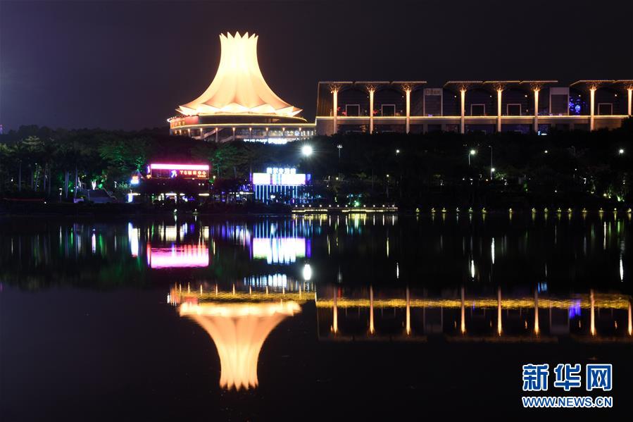 廣西南寧國(guó)際會(huì)展中心倒映在水面(12月10日攝)。 新華社記者 陸波岸 攝