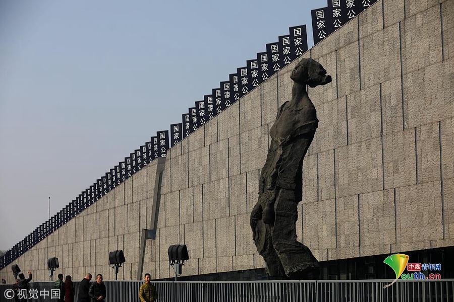 2018年12月12日,民眾在侵華日軍南京大屠殺遇難同胞紀念館外參觀。12月13日,南京大屠殺死難者國家公祭儀式將在侵華日軍南京大屠殺遇難同胞紀念館舉行。圖片作者:泱波