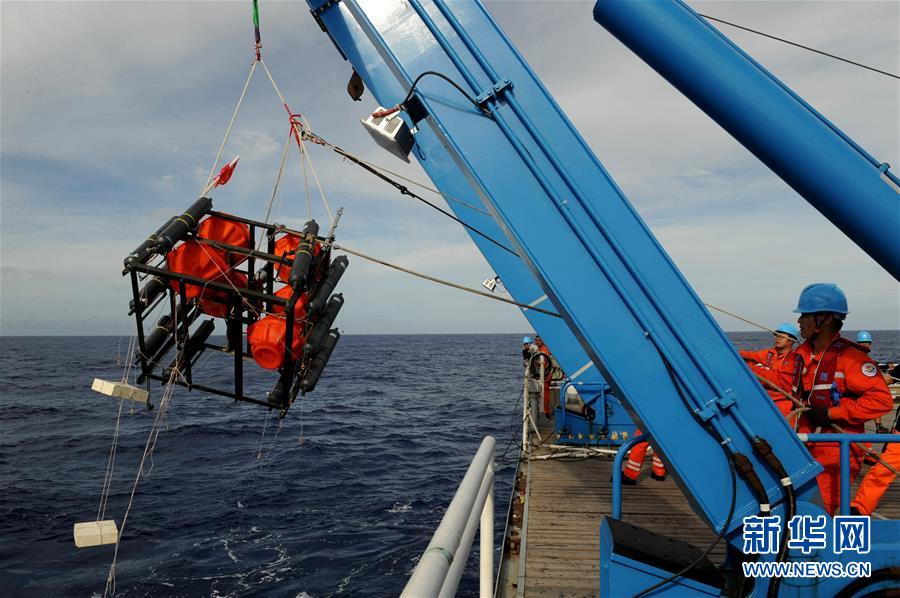 考察隊(duì)員將負(fù)責(zé)拍攝和誘捕生物的“彩虹魚”第二代著陸器布放到海里(12月10日攝)。 由上海海洋大學(xué)和西湖大學(xué)聯(lián)合組成的“彩虹魚”科考團(tuán)隊(duì),12月11日在全球最深的海溝——馬里亞納海溝成功完成兩臺(tái)“彩虹魚”第二代著陸器的萬米級海試,深度分別為10918米和10899米。 新華社記者 張建松 攝