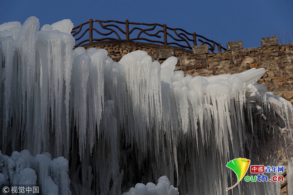 人工冰瀑形成美麗的冰瀑景觀。