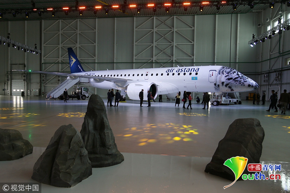 當(dāng)?shù)貢r(shí)間2018年12月14日,哈薩克斯坦阿斯塔納,巴西航空工業(yè)公司E190-E2飛機(jī)在阿斯塔納國際機(jī)場亮相。