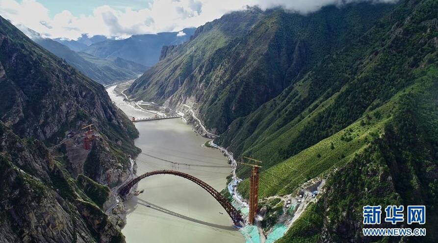 9月28日無人機拍攝的川藏鐵路拉林段重點標志性工程藏木特大橋。當日,隨著最后一節(jié)鋼管拱的對位和鎖定完畢,川藏鐵路拉林段藏木特大橋成功合龍,標志著大橋主體結(jié)構(gòu)施工取得了關鍵性勝利。藏木特大橋由中國中鐵廣州局集團承建,拱高112米,橋橫跨雅魯藏布江峽谷,水深66米。新華社記者普布扎西攝