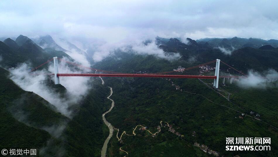 2018年6月26日,一場(chǎng)大雨后貴州省安順市關(guān)嶺縣壩陵河大峽谷云霧繚繞,橫跨兩岸的壩陵河大橋在云霧中時(shí)隱時(shí)現(xiàn),更顯雄偉壯觀。