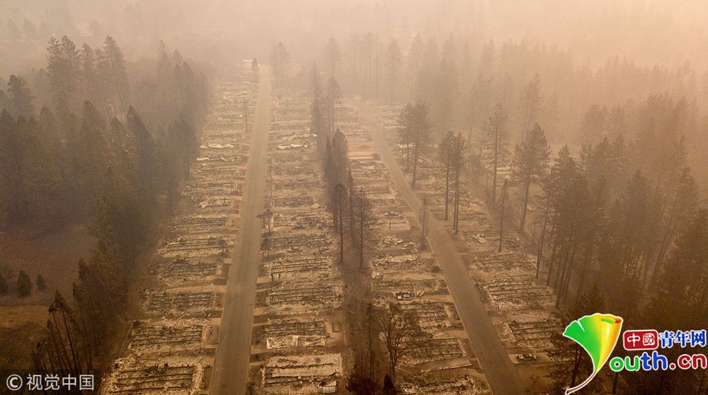 天堂變“地獄” 航拍加州山火肆虐社區(qū)似墓地