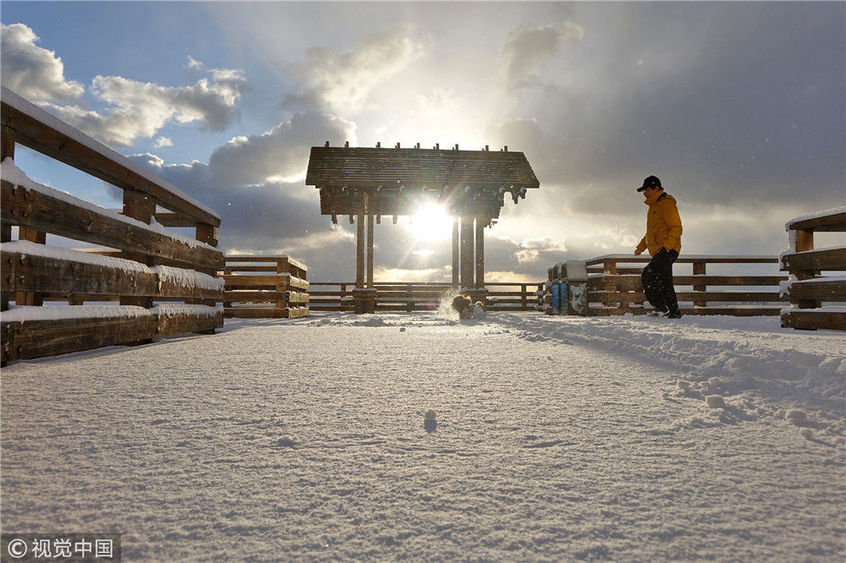 2018年12月7日,山東煙臺(tái),雪后的海濱景色。