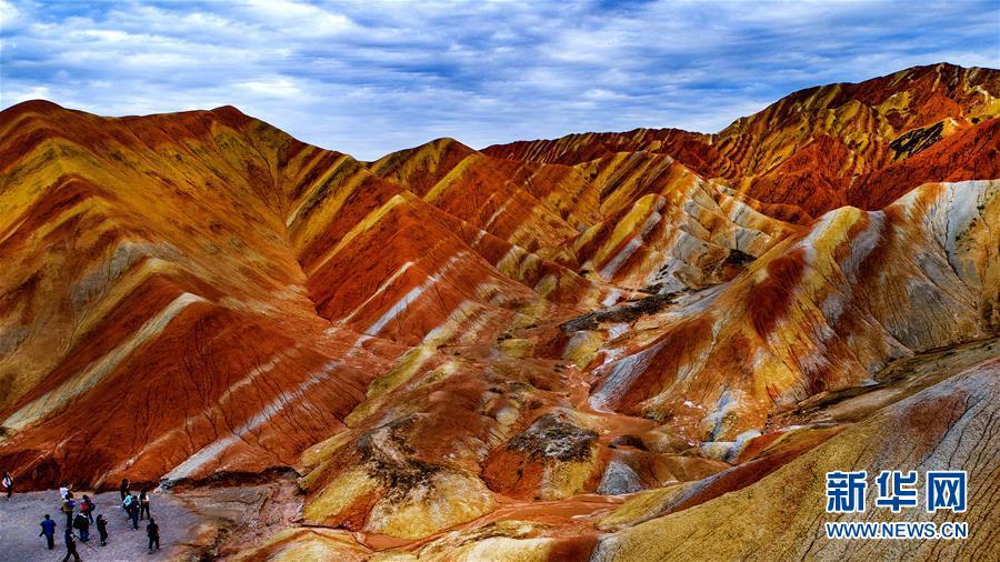 2018年9月5日,游人在張掖丹霞國家地質(zhì)公園游覽。 大地之色,俯仰之間;壯美山河,是我的祖國。2018年,新華社記者操縱無人機“飛閱”華夏大地,在最美的時節(jié),定格下她的色彩斑斕。 新華社記者 陶明 攝
