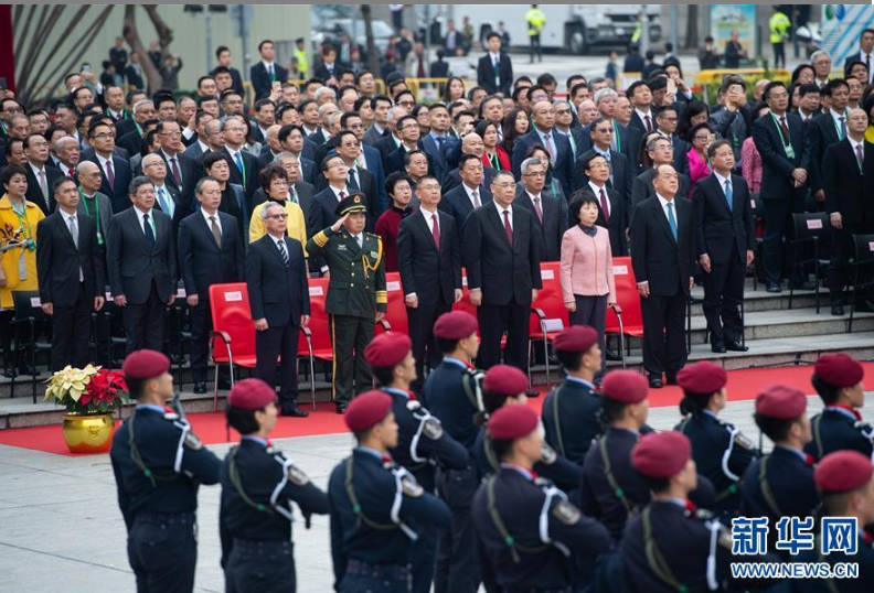 12月20日,澳門特別行政區(qū)政府在澳門金蓮花廣場舉行升旗儀式,慶祝澳門回歸祖國19周年。 新華社記者 張金加 攝