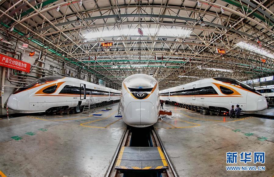 中車唐山機(jī)車車輛有限公司的工人在復(fù)興號(hào)動(dòng)車組生產(chǎn)線上工作(3月23日攝)。 新華社記者楊世堯攝