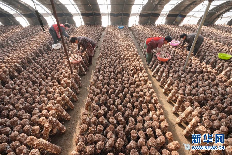 12月20日,唐山市豐潤區(qū)小美食用菌種植農(nóng)民專業(yè)合作社社員在大棚內(nèi)采摘香菇。 新華社記者 牟宇攝
