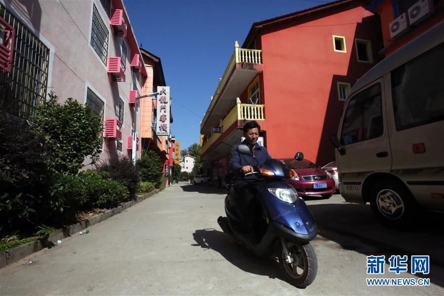 舒港發(fā)騎著電動(dòng)車(chē)行進(jìn)在村子里(10月28日攝)。