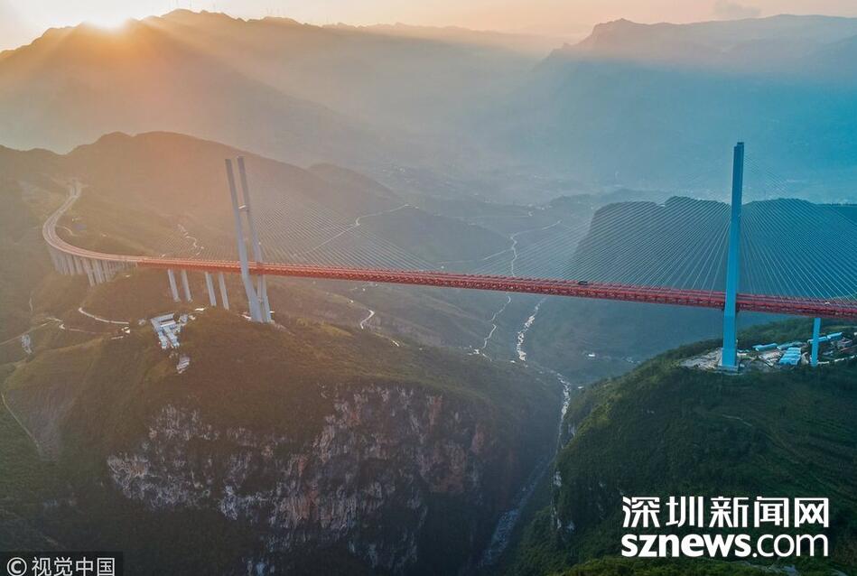 畢都高速公路北盤江大橋是杭瑞高速公路畢都段的控制性工程,位于貴州省和云南省交界處,由貴州省和云南省共建。該橋橋面至江面高差達(dá)565米,成為目前世界第一高橋。主橋?yàn)殇撹炝盒崩瓨?,主?20米,目前位居同類型橋梁2016年12月29日正式通車。