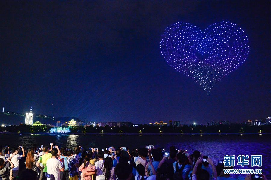 8月16日,無(wú)人機(jī)在湖南長(zhǎng)沙橘子洲頭擺出愛(ài)心圖案。 在即將過(guò)去的2018年,各地?cái)z影師用鏡頭記錄下四季中國(guó)。大江南北,一幅幅色彩斑斕的美麗畫(huà)卷徐徐展開(kāi)。 新華社記者 張笑宇 攝