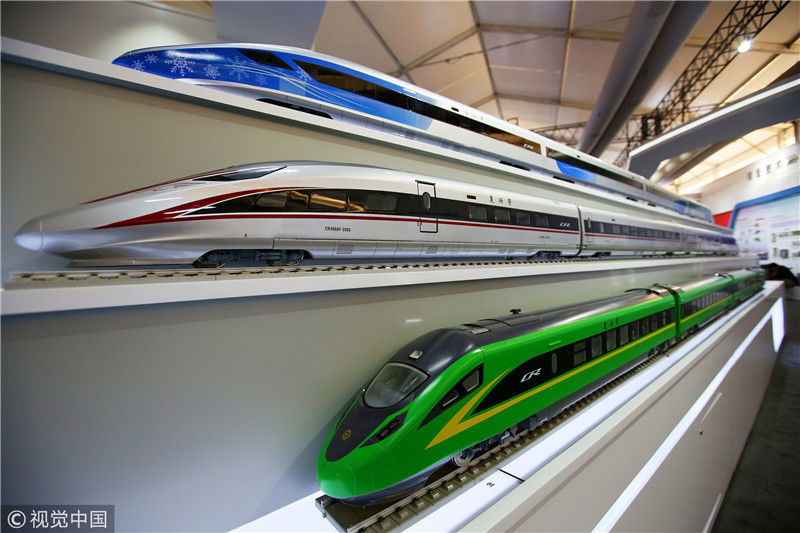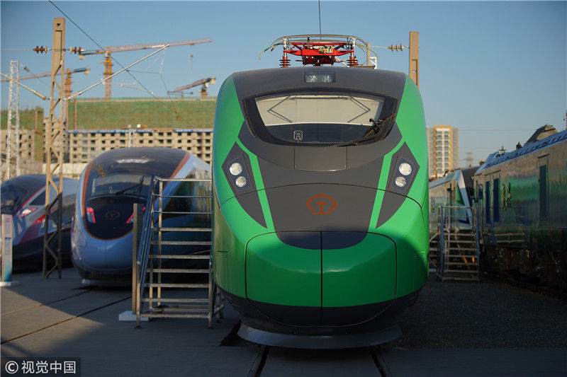 2018年12月24日,北京,中國(guó)鐵路科技創(chuàng)新成果展在國(guó)家鐵道試驗(yàn)中心舉行。新型復(fù)興號(hào)動(dòng)車組實(shí)車首次公開(kāi)亮相,現(xiàn)場(chǎng)體驗(yàn)乘車運(yùn)行。視覺(jué)中國(guó)