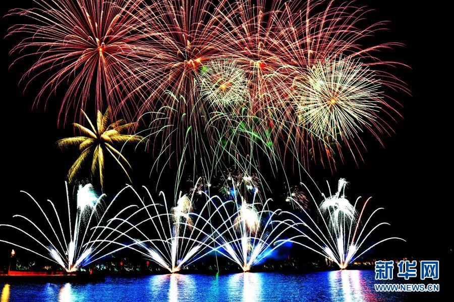 這是1月1日在葡萄牙首都里斯本的特茹河上拍攝的煙火表演。 新華社記者張立云攝