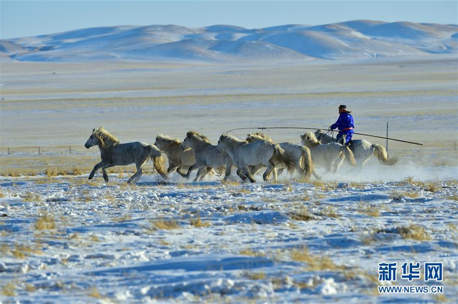 1月8日,牧民進(jìn)行套馬表演。 時(shí)下正值草原冬季旅游旺季,內(nèi)蒙古自治區(qū)西烏珠穆沁旗的牧民們?cè)谘┰弦徽股硎?,為游客展現(xiàn)獨(dú)特的民族風(fēng)情。 新華社記者 鄒予 攝