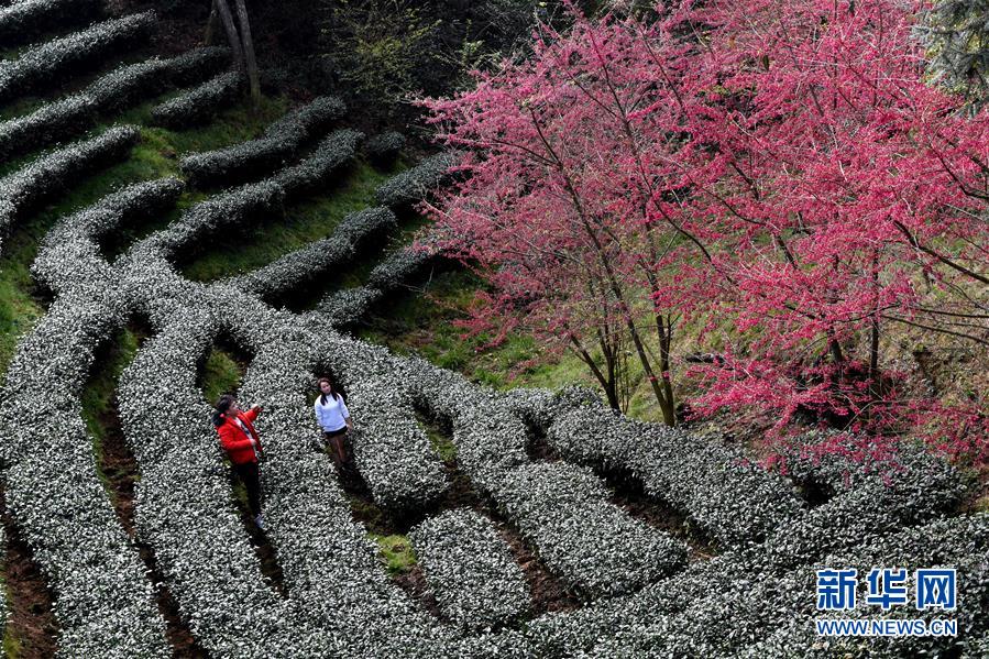 福建省連城縣賴源鄉(xiāng)黃宗村海拔1000余米的高山茶園面積約千畝,園內(nèi)套種一萬余棵櫻花樹。寒冬時節(jié),綻放的櫻花與綠色茶園相互映襯,宛如一幅田園畫卷。