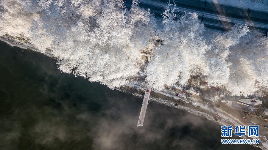 這是在吉林省吉林市豐滿區(qū)吉豐東路松花江畔拍攝的霧凇美景(12月12日無人機拍攝)。 新華社記者張楠攝